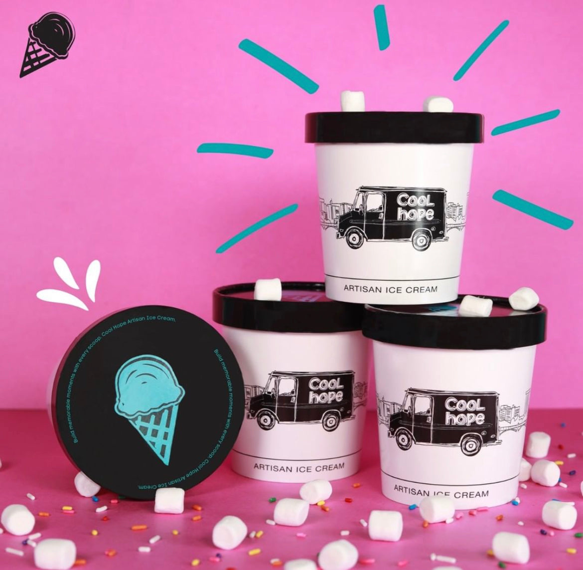 Then came the pints. First hand-stamped, now beautifully designed, but always made with the same intention: to bring our ice cream to you. Into your homes, your movie nights, your self-care Sundays. The pint became a symbol of resilience, of evolution, and of everything Cool Hope stands for: indulgence, warmth, and a little sparkle, no matter the season.